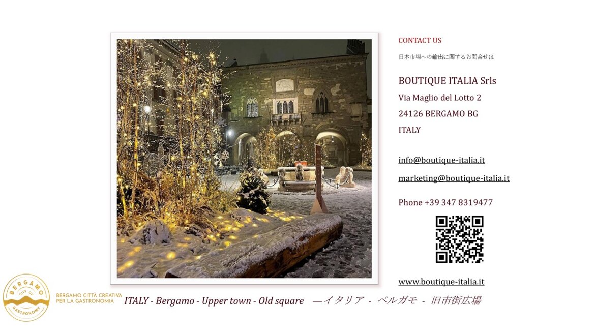 Via Maglio del Lotto 2 - 24126 BERGAMO BG - ITALIA - info@boutique-italia.it - tel. +39 347 8319477